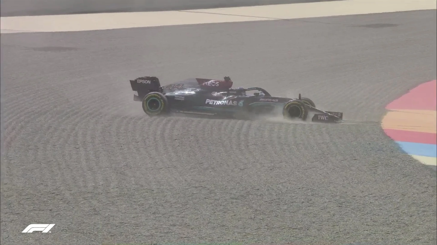Гонщик «Мерседеса» Льюис Хэмилтон вылетел в гравийную ловушку и вызвал появление красных флагов во второй день предсезонных тестов в Бахрейне.