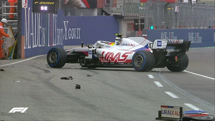 Пилот «Хааса» Мик Шумахер потерял переднее антикрыло на первых кругах Гран-при Эмилии-Романьи.