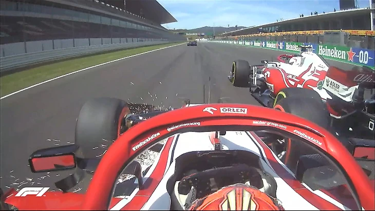 Пилот «Альфа Ромео» Кими Райкконен сошел с дистанции Гран-при Португалии на втором круге. Райкконен боролся со своим напарником по команде и в результате контакта между болидами сломал переднее антикрыло.