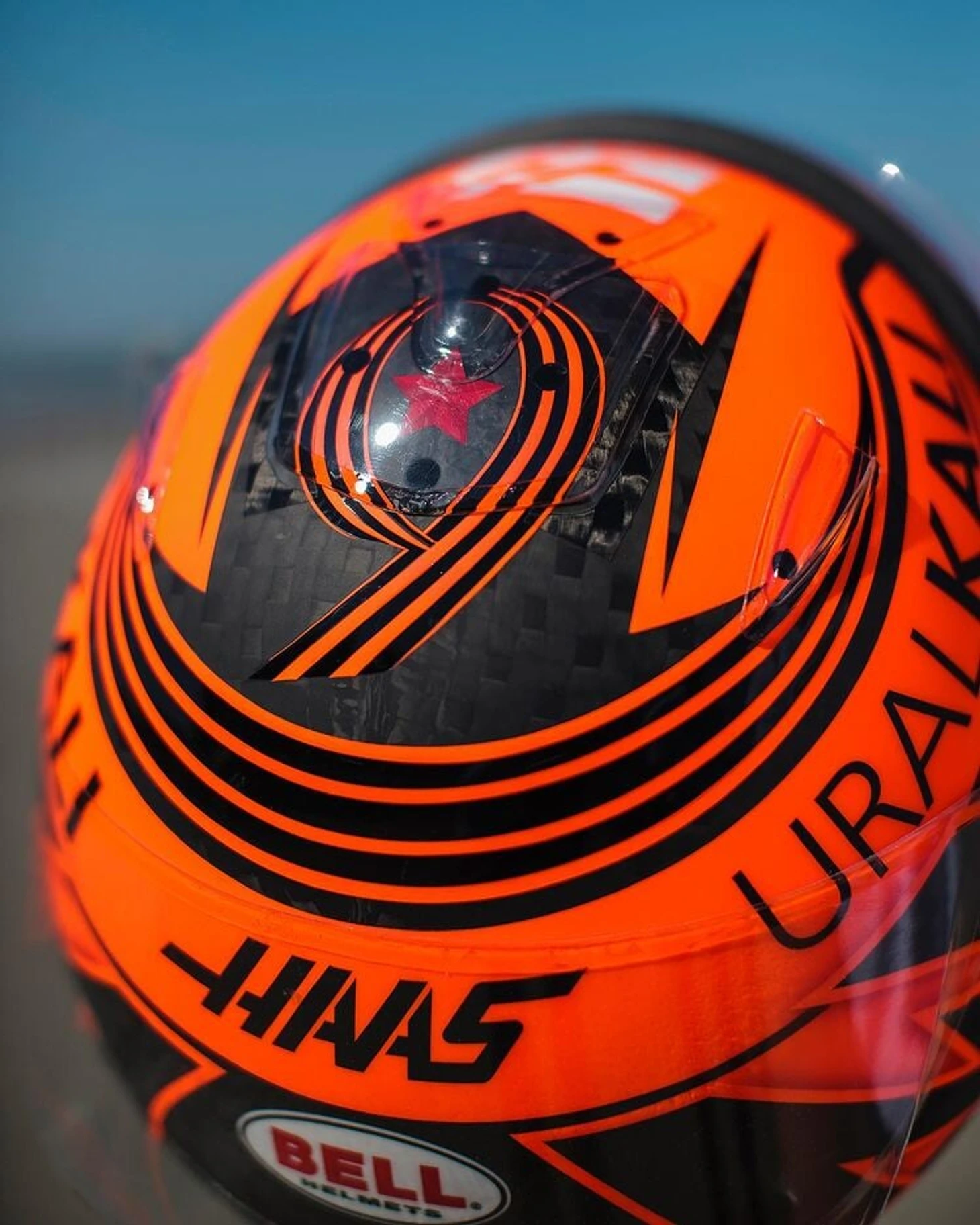Мазепин добавил Георгиевскую ленту на шлем в честь Дня Победы