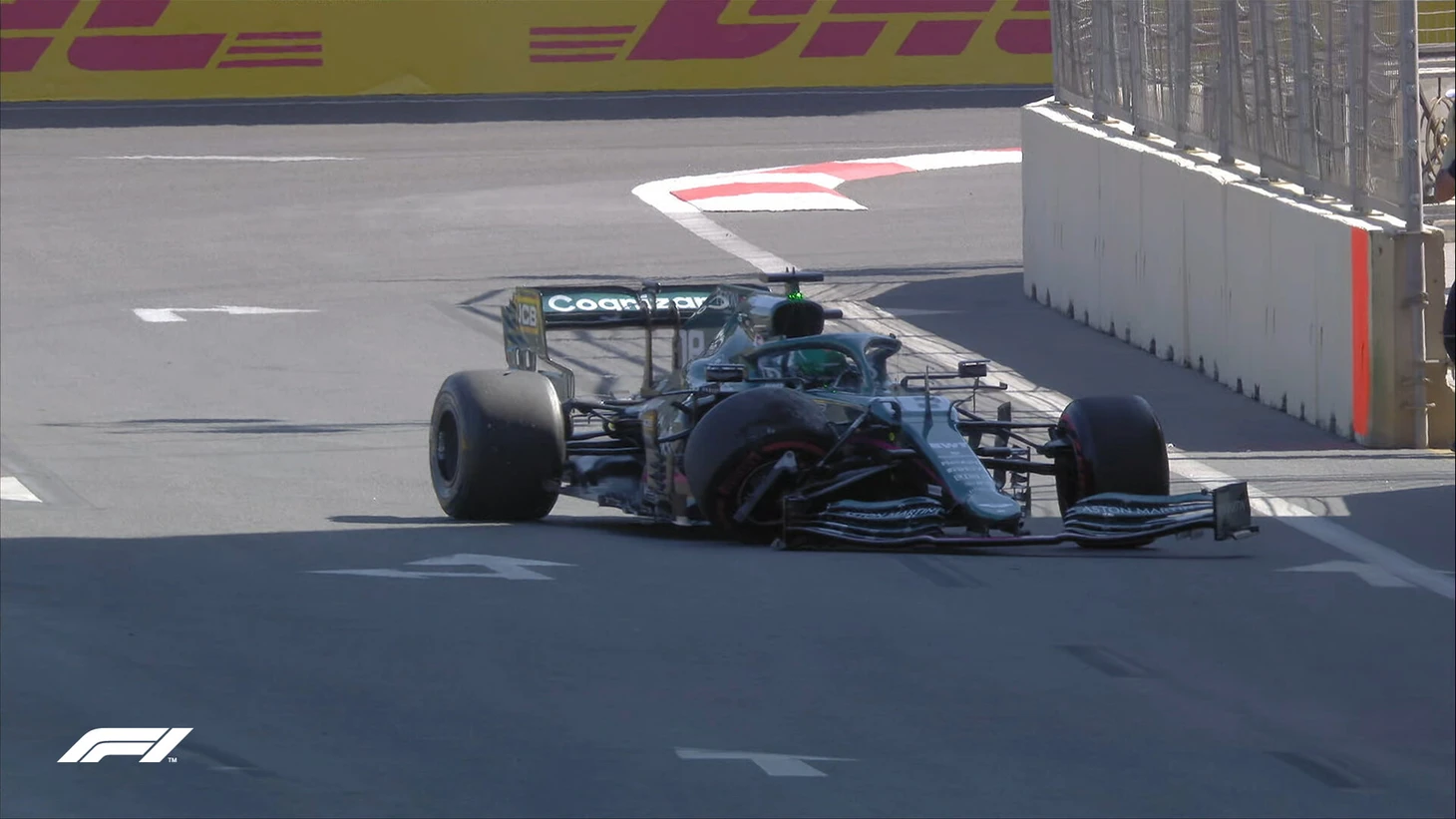 Гонщик «Астон Мартин» Ланс Стролл выбыл из борьбы в первом сегменте квалификации к Гран-при Азербайджана, столкнувшись с барьерами в 15-м повороте.