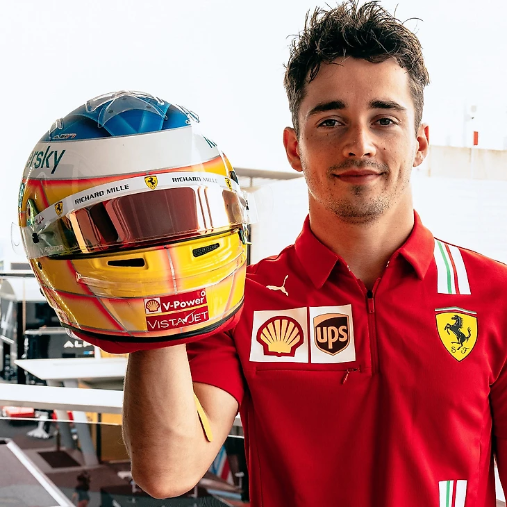 Гонщик «Феррари» Шарль Леклер показал шлем для Гран-при Франции.
