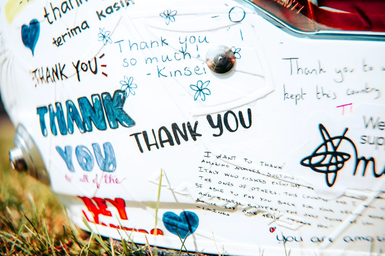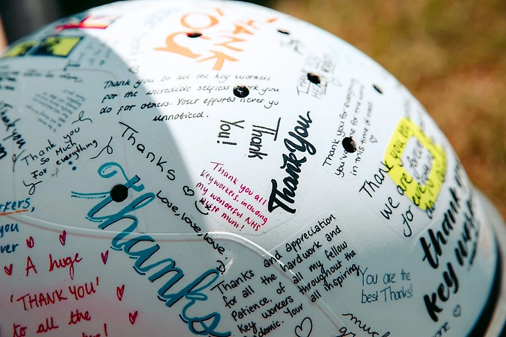 Ландо поместил на шлем сообщения болельщиков, которые благодарят врачей, медсестер и представителей других социально значимых профессий за работу в период пандемии коронавируса.
