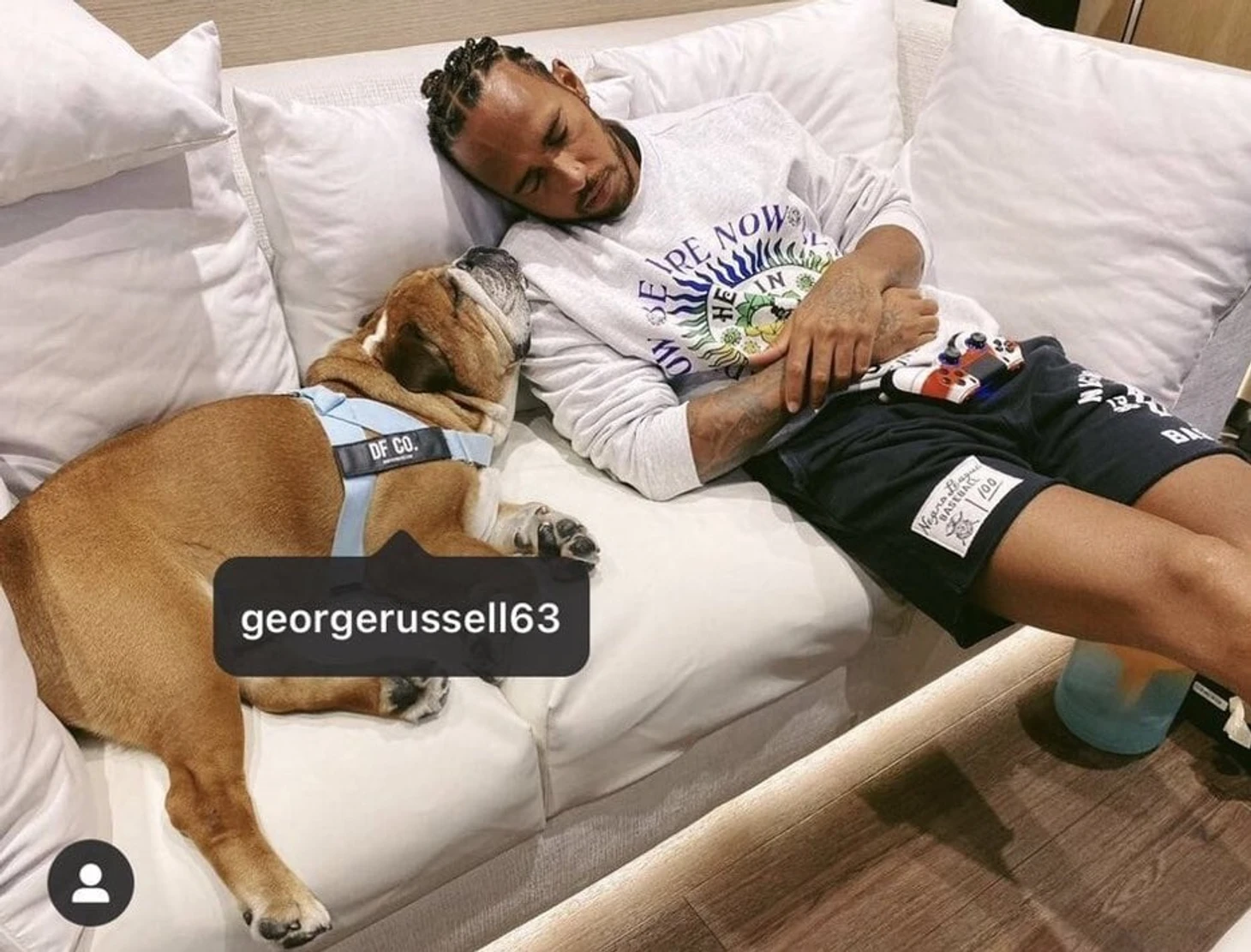 Хэмилтон отметил Расселла на фото своего пса Роско