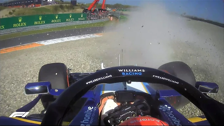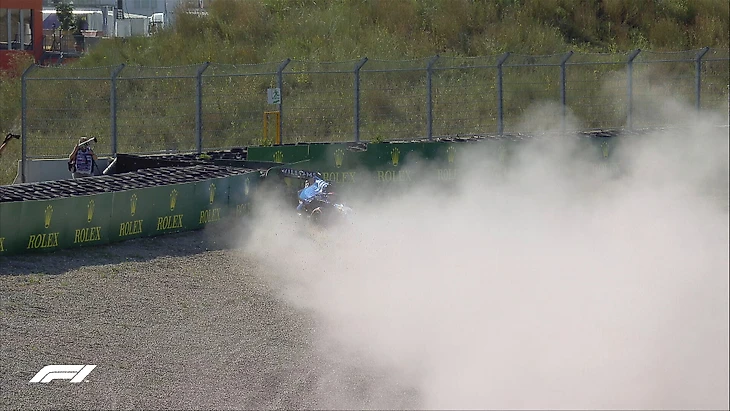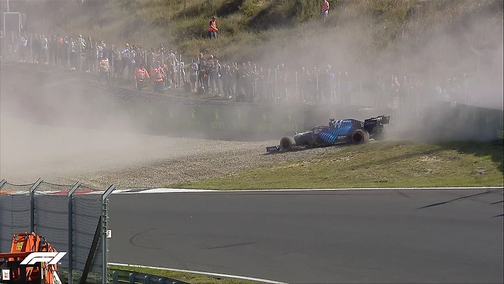 Гонщик «Уильямса» Джордж Расселл вылетел в гравий во время второго сегмента квалификации к Гран-при Нидерландов.