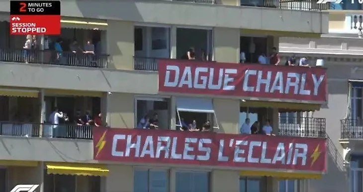На домашнем для Шарля Гран-при Монако болельщики поддержали своего кумира соответствующим баннером.