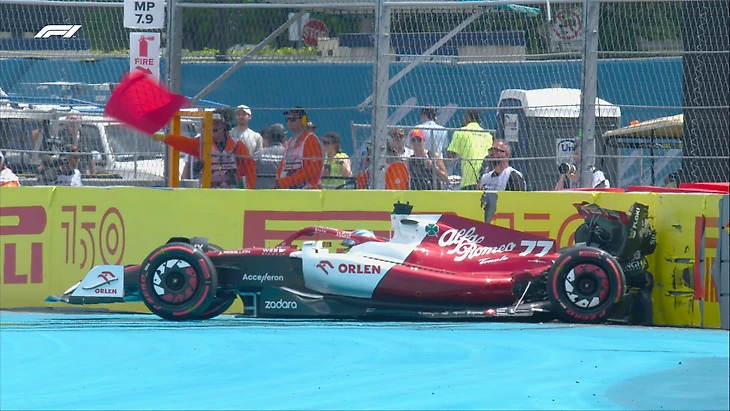Сессия в результате аварии была временно остановлена красными флагами.
