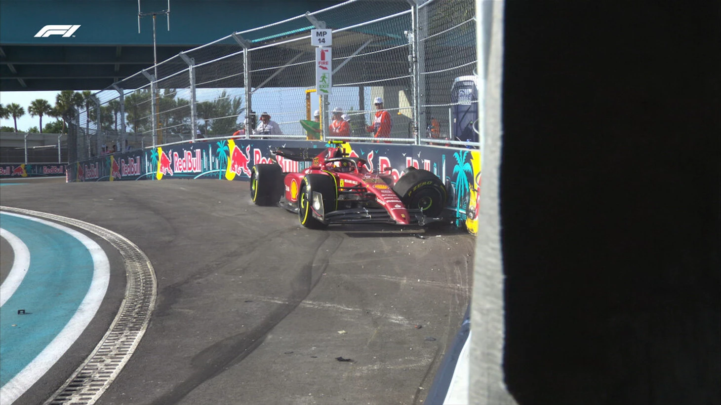 Гонщик «Феррари» Карлос Сайнс попал в аварию во время второй сессии свободных заездов перед Гран-при Майами.