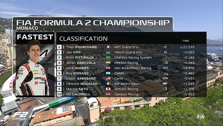 Пилот «Карлина» Лиам Лоусон завоевал поул в квалификации «Формулы-2» в Монако, однако затем лишился его из-за списания круга.