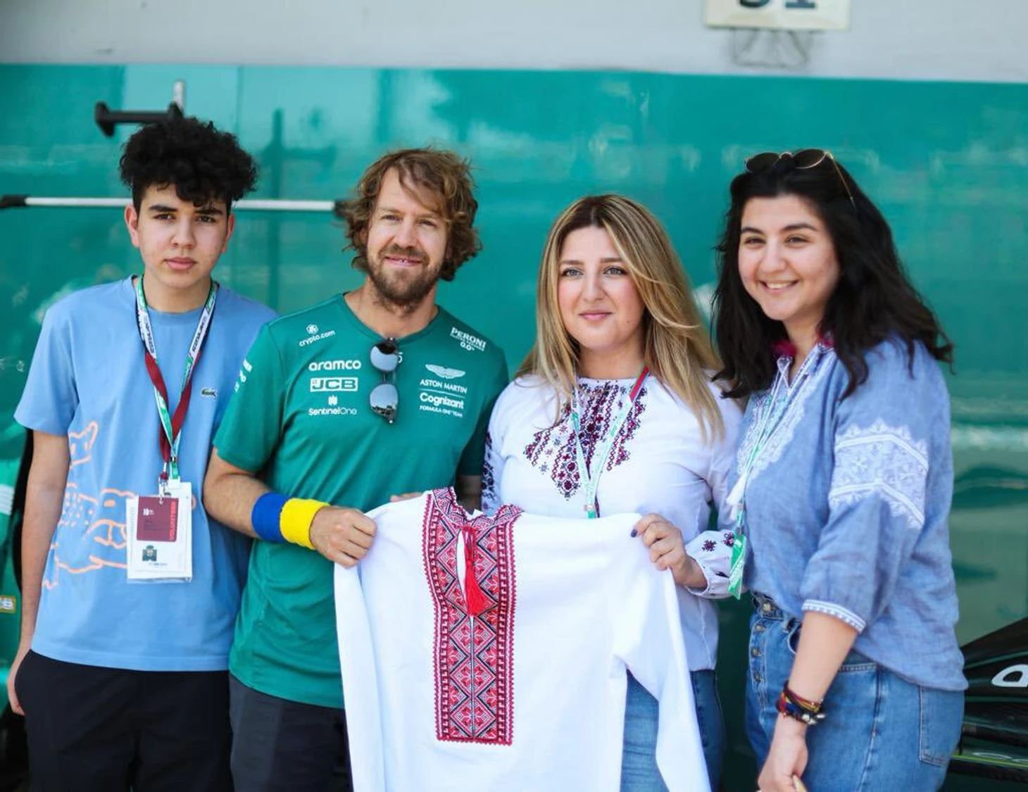На Гран-при Азербайджана Феттелю передали вышиванку. По ходу сезона-2022 четырехкратный чемпион «Формулы-1» выступал в шлеме с синей и желтой полосами и не раз высказывался о текущей ситуации.