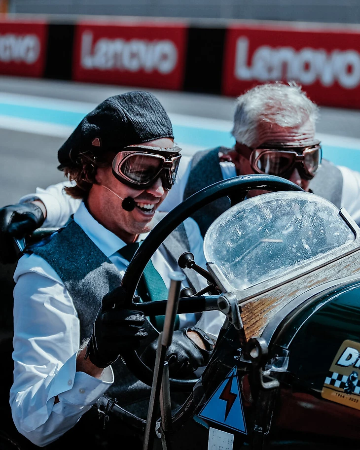 Гонщик «Астон Мартин» Себастьян Феттель провел демонстрационные заезды на болиде TT1 1922 года перед Гран-при Франции.