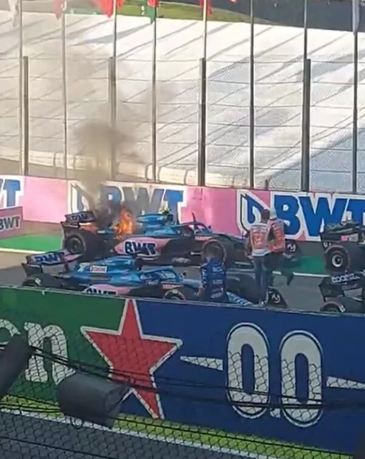 Эстебан Окон, вероятно, получит штраф на Гран-при Сан-Паулу после возгорания болида.