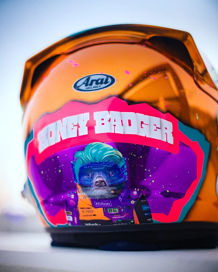 Австралиец представил хромированную ливрею. На задней части шлема изображен медоед в стиле «киберпанк», символизирующий самого Даниэля.