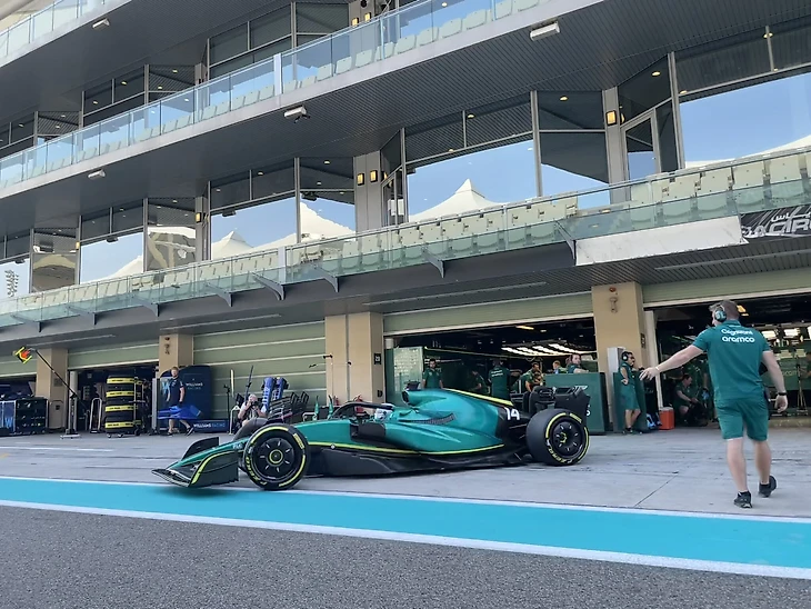 Алонсо выступает на тестах в Абу-Даби за «Астон Мартин» без рекламных логотипов на машине