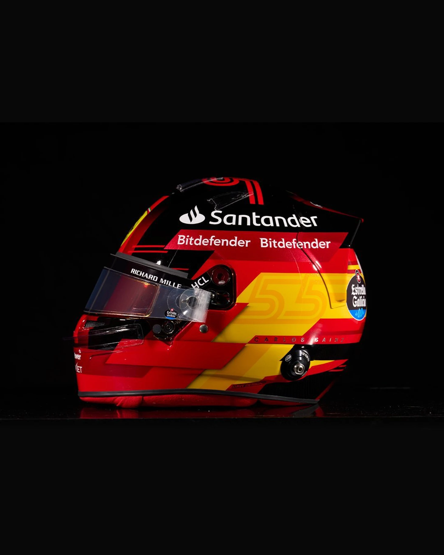 Леклер выбрал красный шлем с белыми элементами, Сайнс предпочел цвета испанского флага.