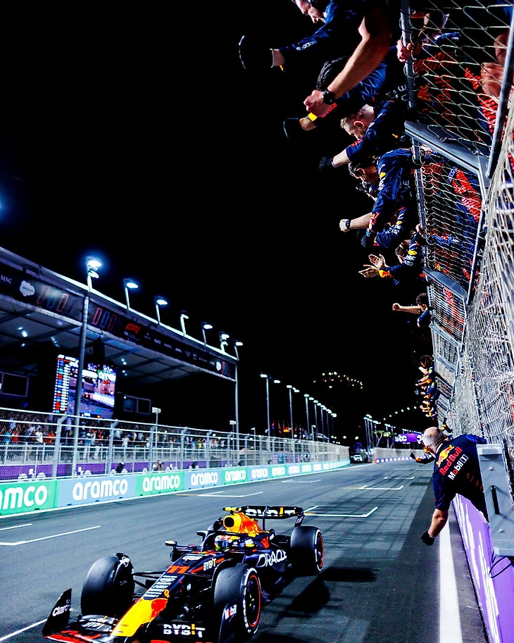На финише Гран-при Саудовской Аравии механики «Ред Булл» и «Астон Мартин» приветствовали призеров Серхио Переса, Макса Ферстаппена и Фернандо Алонсо, забравшись на ограждения у пит-уолл и наклоняясь над трассой. Подобное повторяется почти на каждом этапе «Формулы-1».