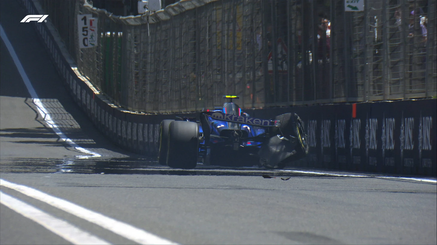 Пилот «Уильямса» Логан Сарджент попал в аварию в первом сегменте квалификации к спринту перед Гран-при Азербайджана.