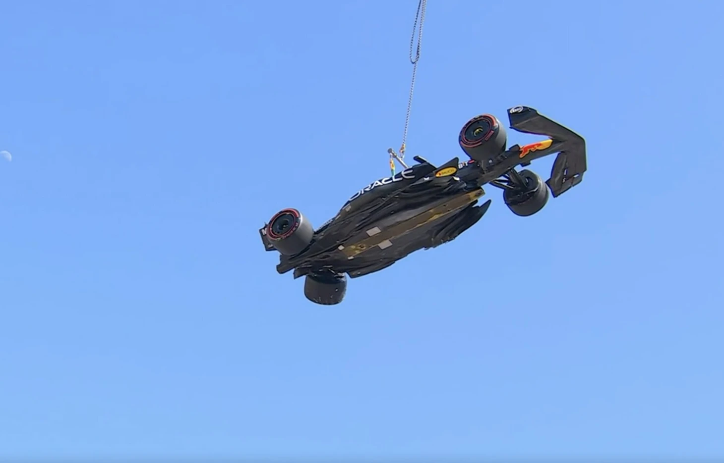 Авария произошла в первом повороте – болид ударился о барьеры задней частью.