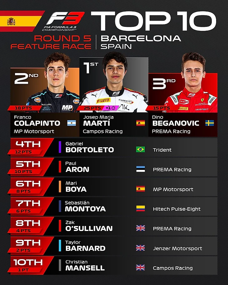 Формула-3. Испания. Марти выиграл 2-ю гонку, Бедрин – 11-й