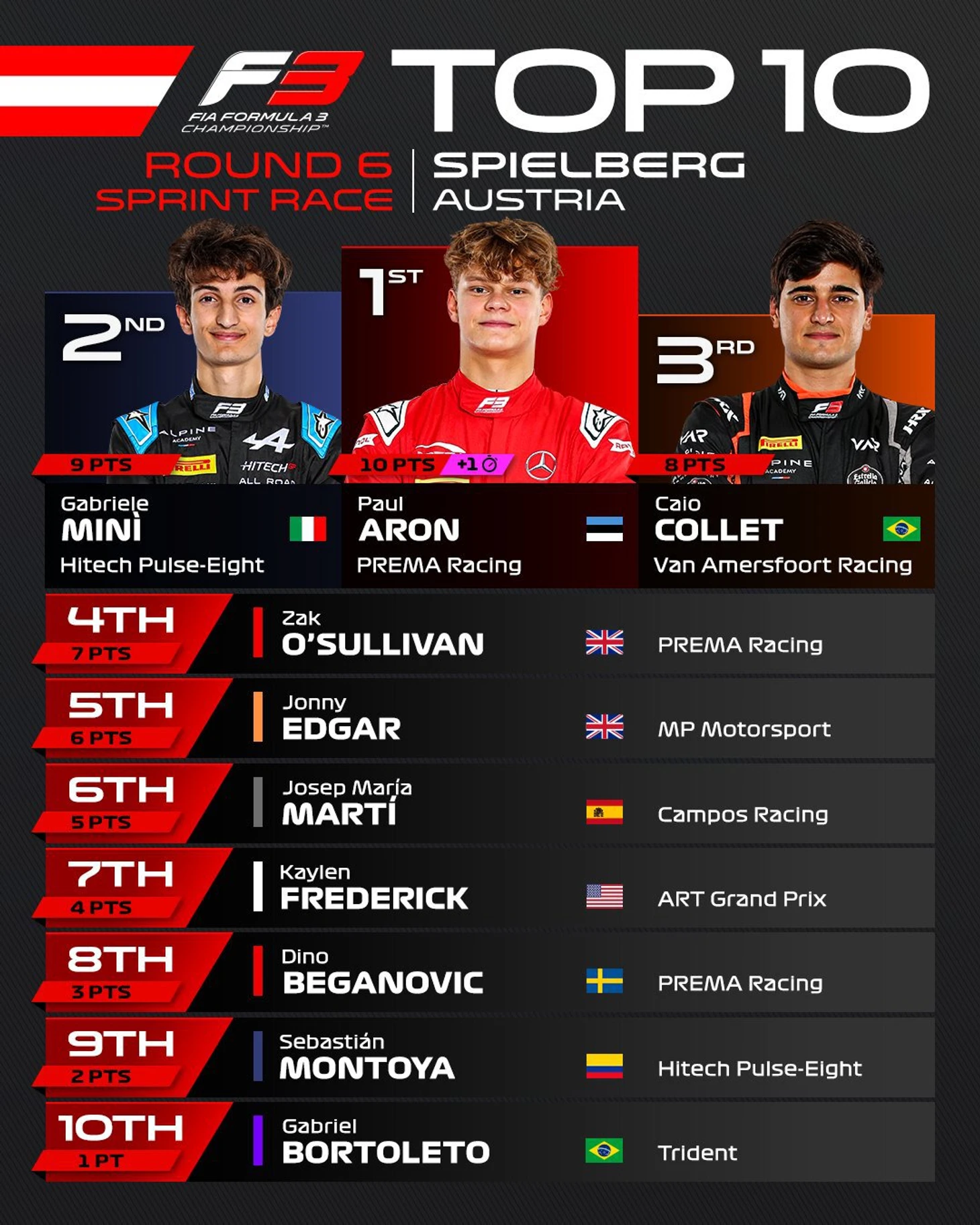 Пауль Арон одержал победу в спринте «Формулы-3» в Шпильберге.