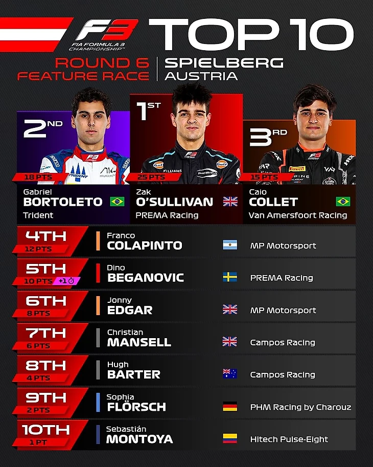 Формула-3. Австрия. О’Салливан выиграл 2-ю гонку, Бортолето – 2-й, Коллет – 3-й, Бедрин – 16-й