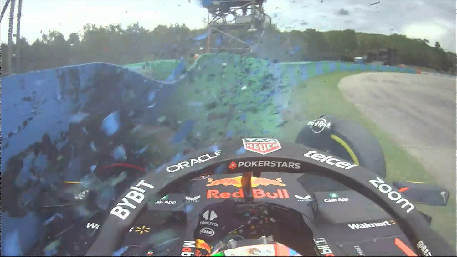 Гонщик «Ред Булл» Серхио Перес попал в аварию на старте первой практики перед Гран-при Венгрии.