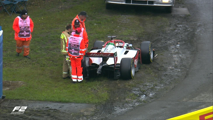 Лидер чемпионата развернулся на подсыхающей трассе по пути на решетку и сошел. Гонщик «АРТ» Виктор Мартен стал участником аналогичного инцидента, однако смог продолжить движение.