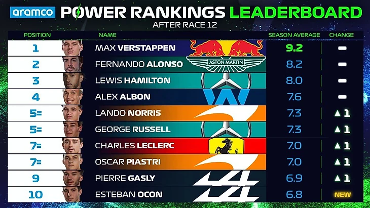 Ферстаппен продолжает возглавлять рейтинг по итогам сезона, Алонсо сохранил второе место, отставание Хэмилтона от экс-напарника сократилось до 0,2 балла.