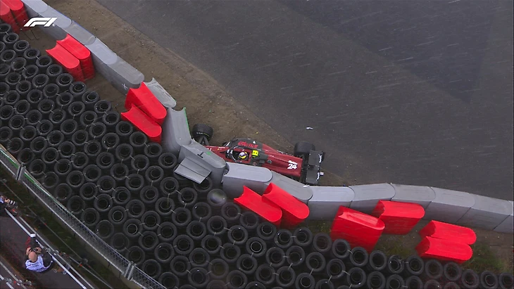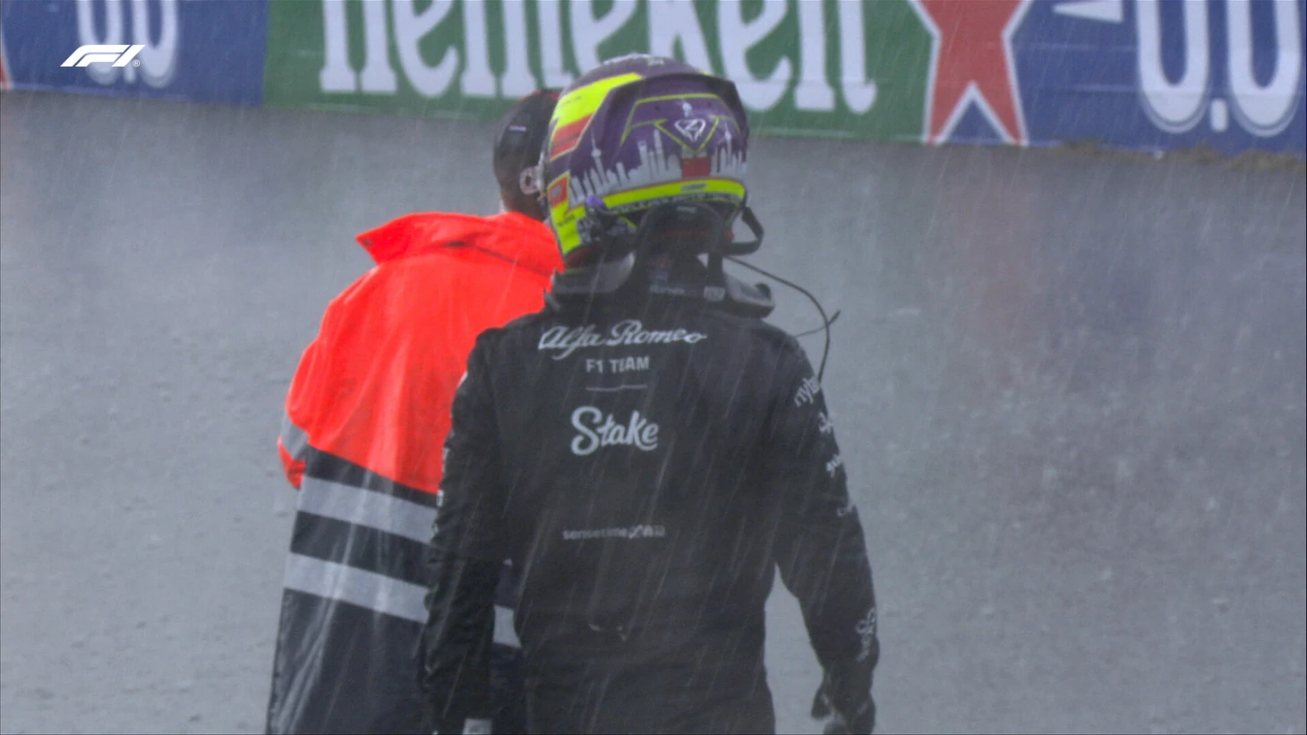 За 8 кругов до финиша в Зандворте снова пошел дождь и Чжоу не сумел удержать машину на быстро намокшей трассе, в результате вылетев с трека и врезавшись в барьеры.
