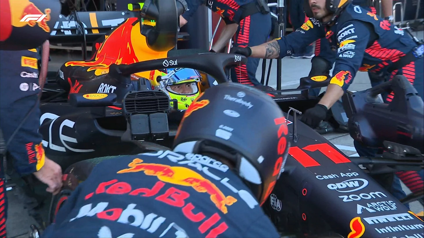 «Ред Булл» дважды заменял передние антикрылья на болиде мексиканца. В итоге Перес сошел, заехав в боксы.