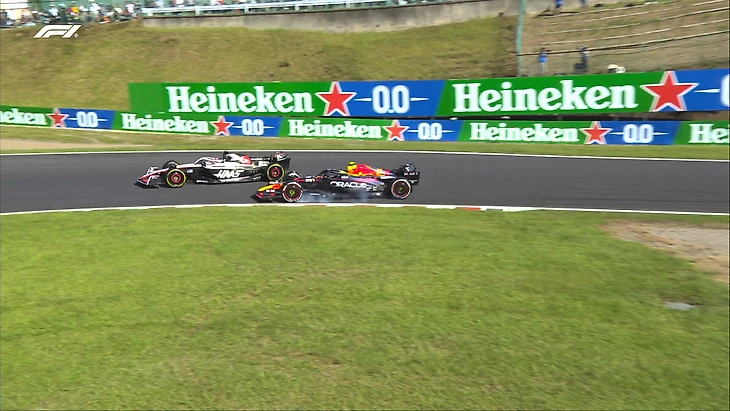 За 15 кругов Перес успел столкнуться с пилотом «Мерседеса» Льюисом Хэмилтоном и развернуть Кевина Магнуссена из «Хааса». Кроме того, Серхио получил пятисекундный штраф за нарушение в режиме машины безопасности.