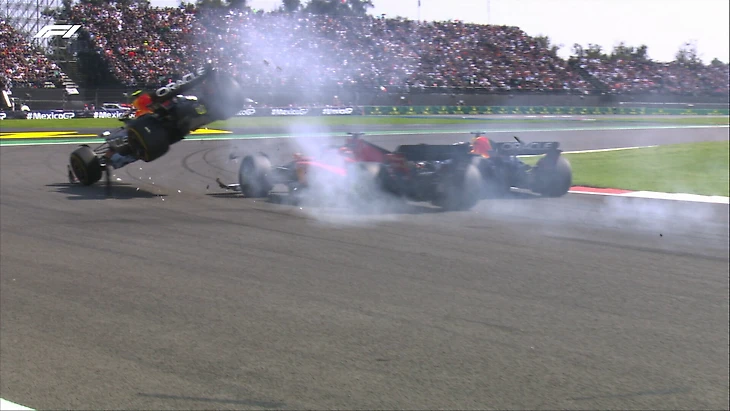 Перес сошел после столкновения с Леклером в первом повороте Гран-при Мехико