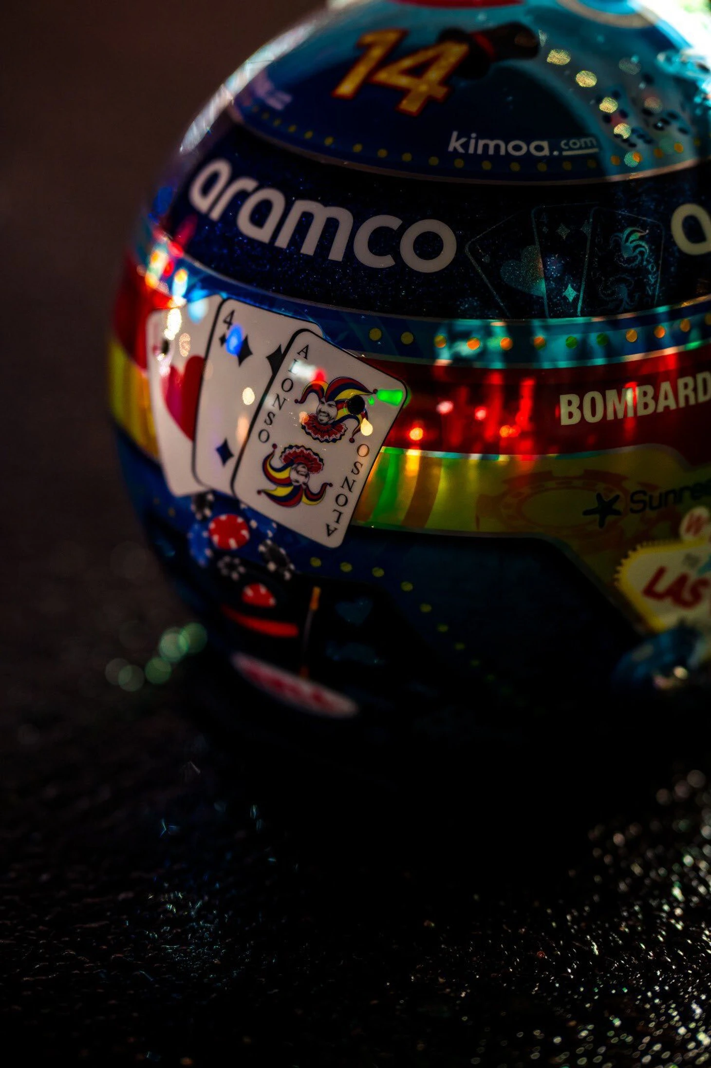 Пилот «Астон Мартин» Фернандо Алонсо показал особый шлем для Гран-при Лас-Вегаса.