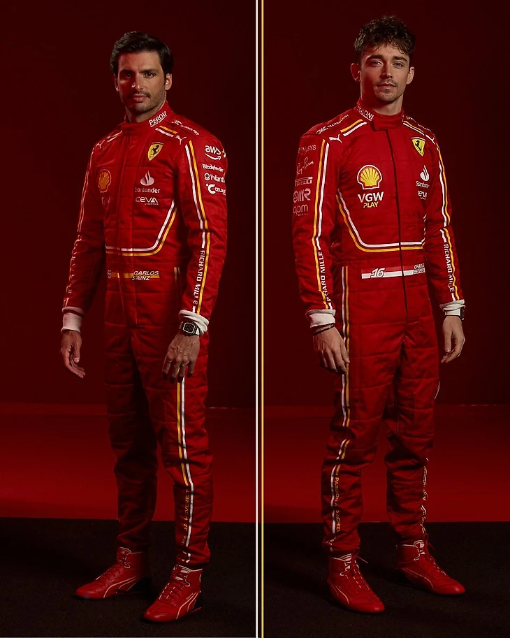 «Феррари» показала комбинезоны Шарля Леклера и Карлоса Сайнса на 2024 год.