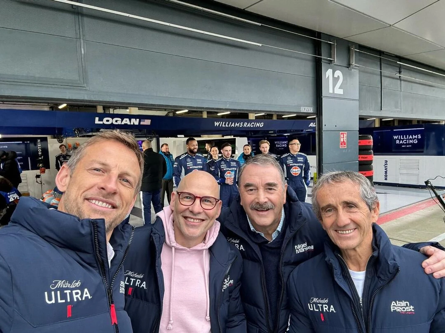 Четырехкратный чемпион мира встретился с другими обладателями титула: Дженсоном Баттоном (2009-й), Жаком Вильневом (1997-й) и Найджелом Мэнселлом (1992-й). Все четыре пилота выступали за «Уильямс», всего на фото семь титулов.