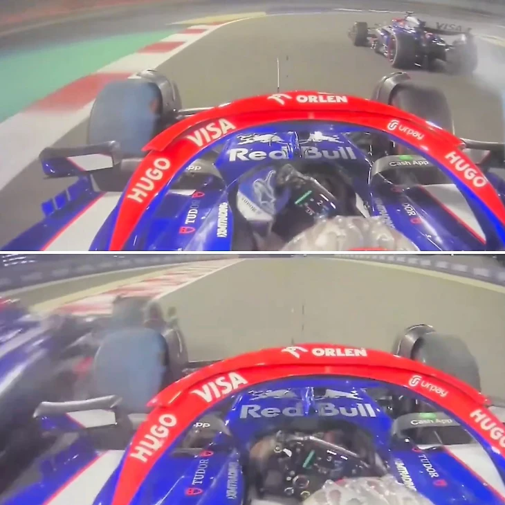 Японец исполнил приказ, однако высказал свое несогласие по радио, иронично поблагодарив мостик. После клетчатого флага Юки заблокировал колеса в восьмом повороте, обгоняя Дэна по внутренней траектории, после чего проехал вплотную к машине партнера по команде.