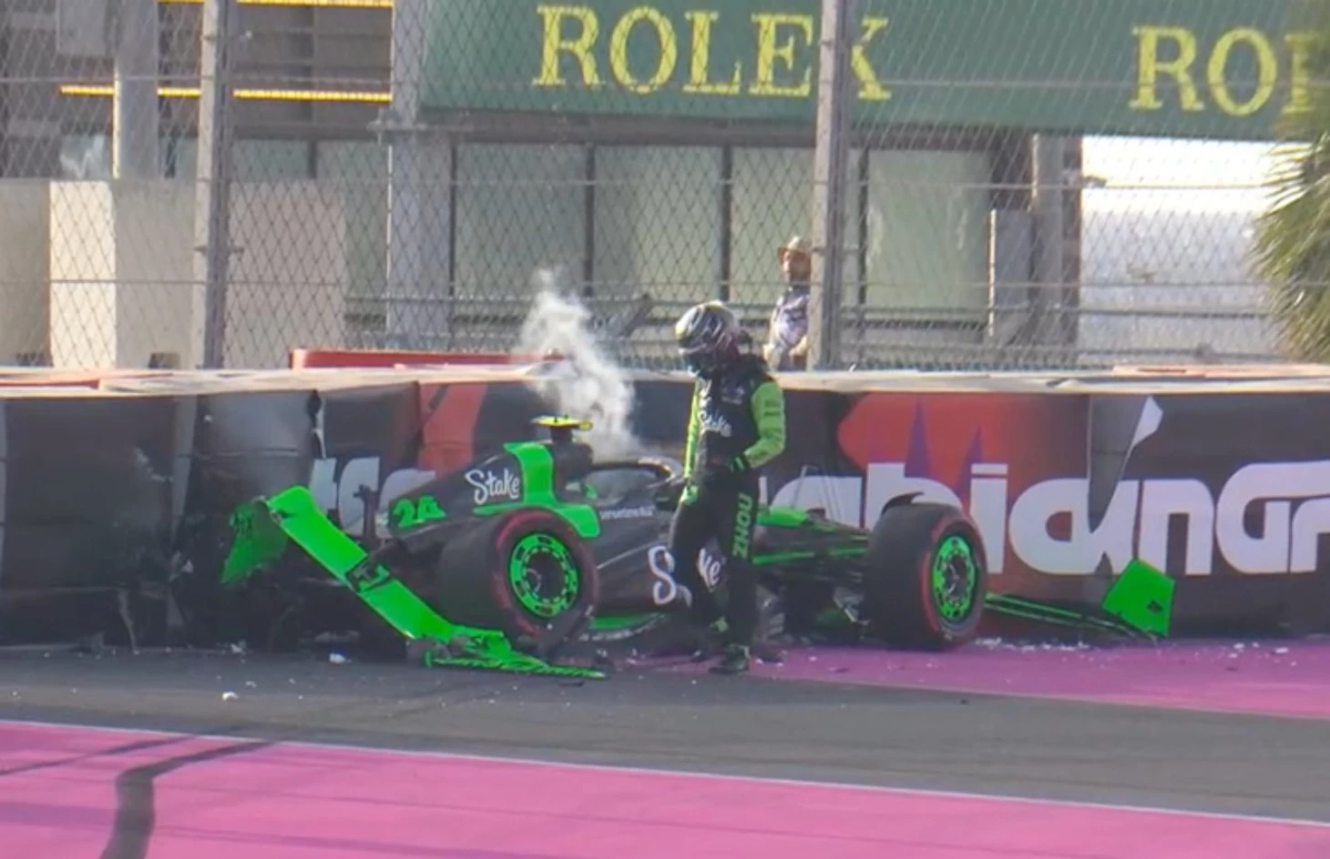 Чжоу попал в аварию в последней практике перед Гран-при Саудовской Аравии.