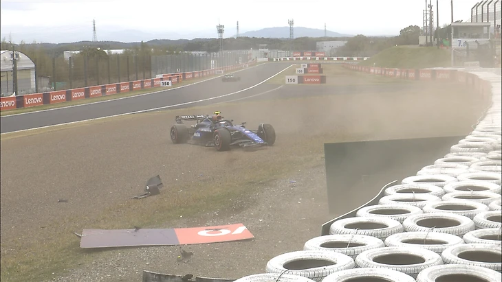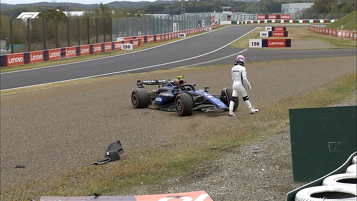 Сарджент врезался в барьеры во время первой практики перед Гран-при Японии в седьмом повороте. Машина дошла до контакта с ограждениями передней, затем задней частями.