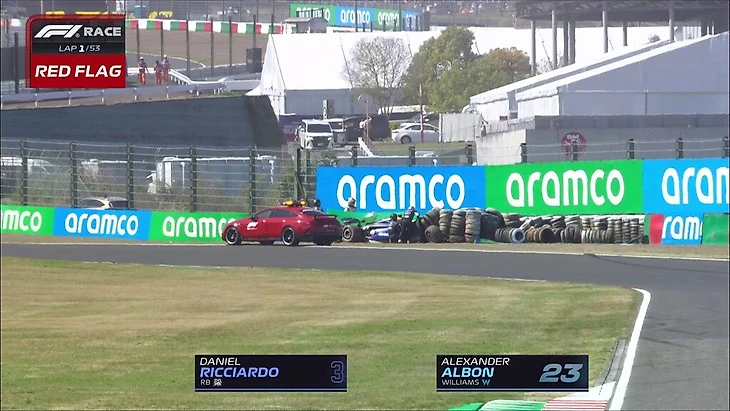 Авария Риккардо и Албона привела к остановке Гран-при Японии.