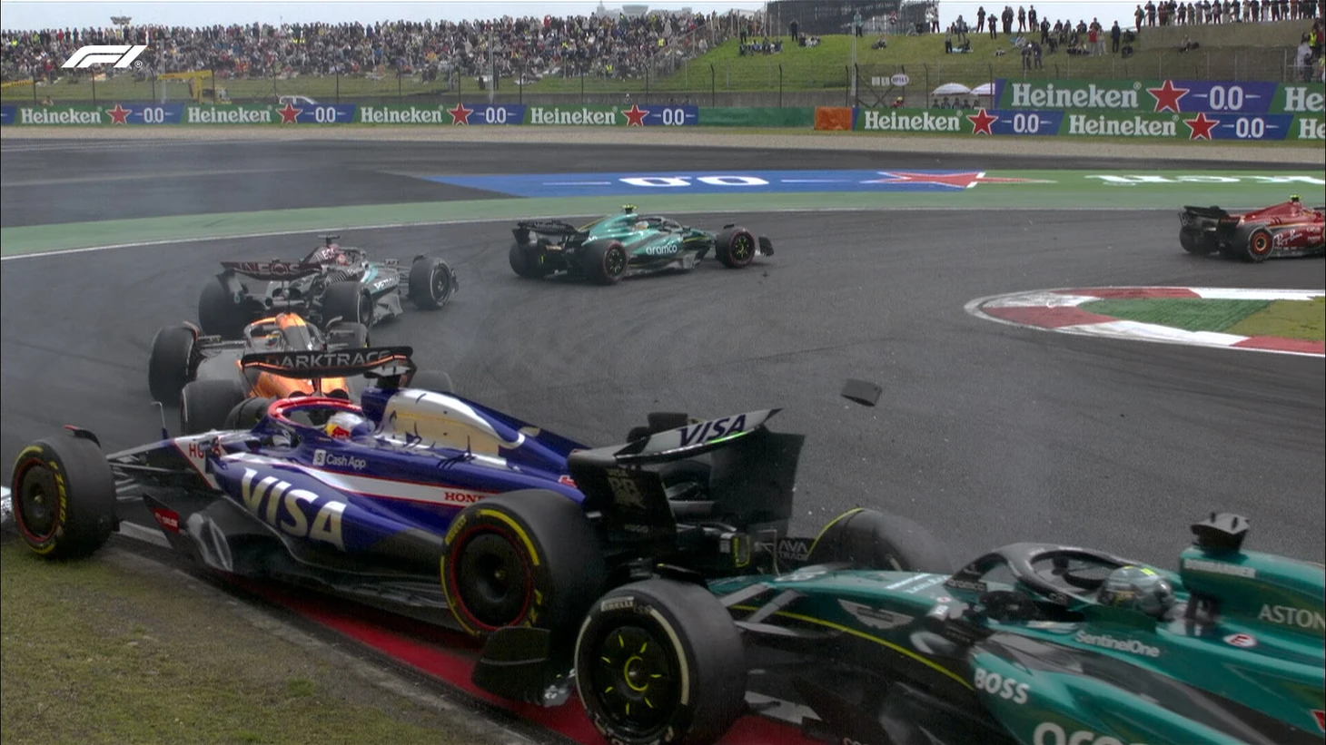 В Даниэля Риккардо врезался пилот «Астон Мартин» Ланс Стролл, с Юки Цунодой столкнулся представитель «Хааса» Кевин Магнуссен. Инциденты произошли на рестарте.