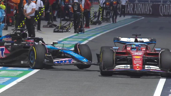 Французский спортсмен и представитель «Феррари» Шарль Леклер дошли до контакта на пит-лейн.