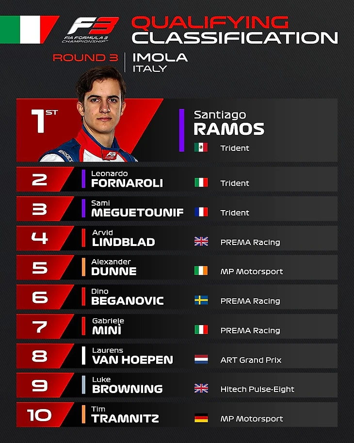 Сантьяго Рамос показал лучшее время в квалификации «Формулы-3» в Имоле.