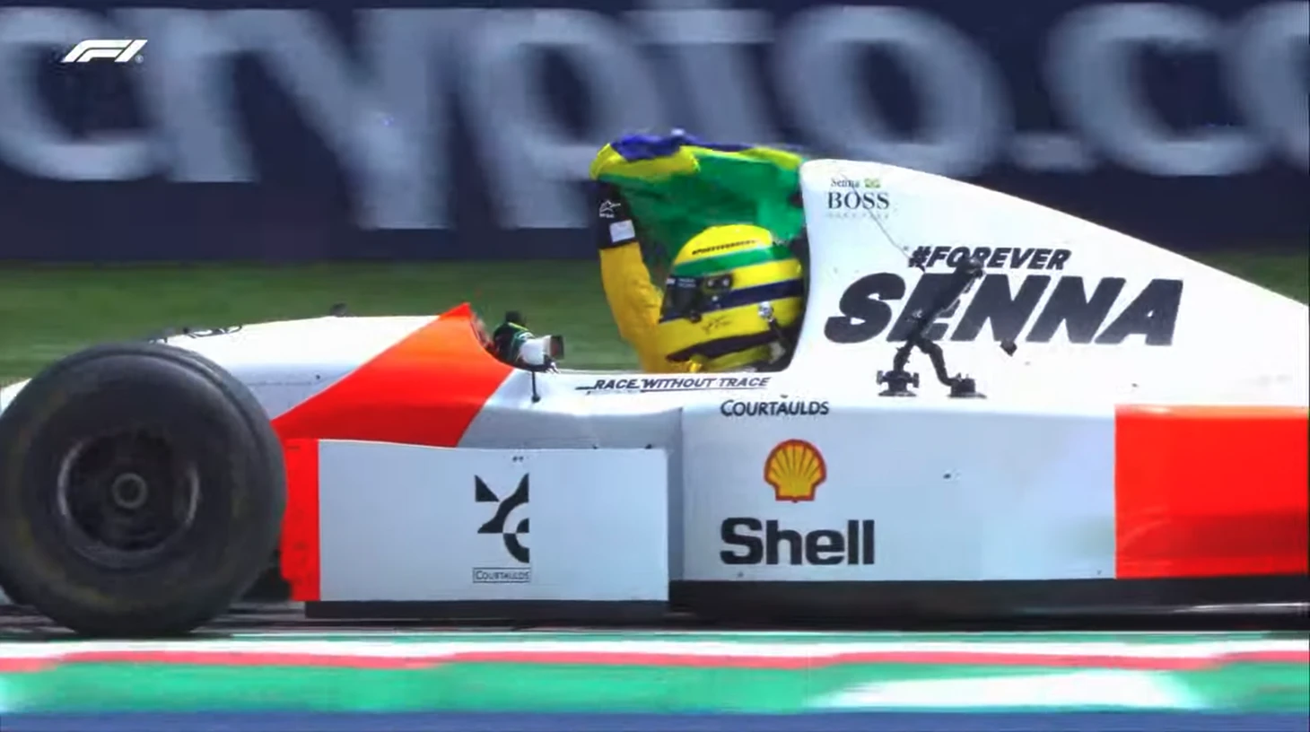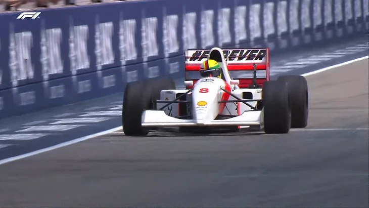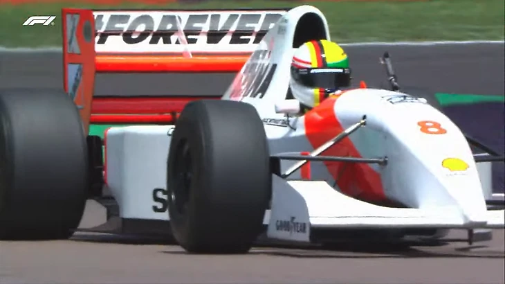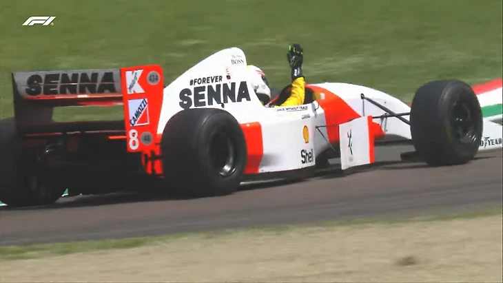 Феттель проехал несколько кругов в «Макларене» Сенны 1993 года MP4/8 с флагами Бразилии и Австрии. Себ использовал шлем, одна половина которого посвящена Айртону, а другая – Роланду.
