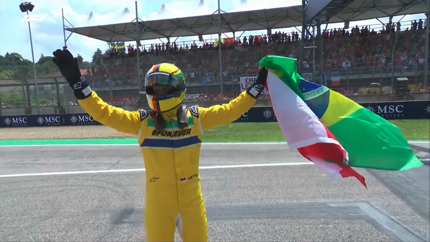 Четырехкратный чемпион «Формулы-1» Себастьян Феттель провел демонстрационные заезды в честь Айртона Сенны и Роланда Ратценбергера перед стартом Гран-при Эмилии-Романьи.