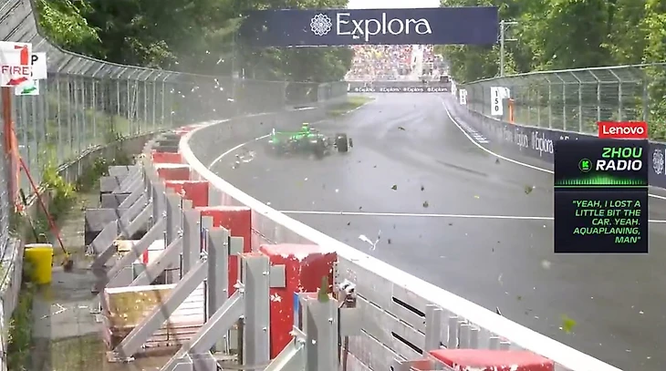 Чжоу врезался в барьеры и вызвал красные флаги в 1-й практике в Монреале