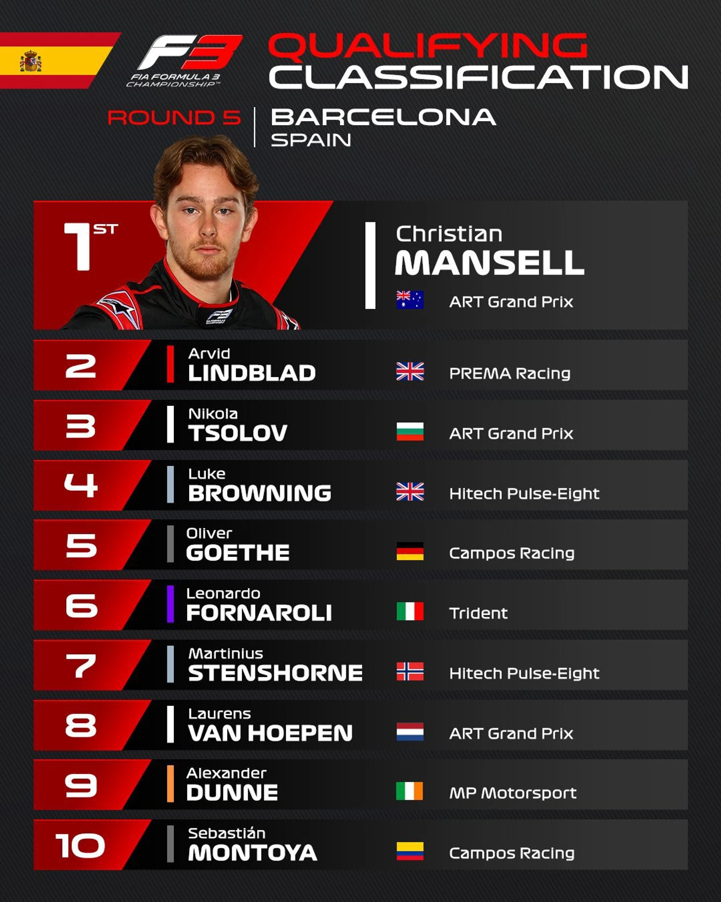 Гонщик «АРТ» Кристиан Мэнселл показал лучшее время в квалификации «Формулы-3» в Барселоне.