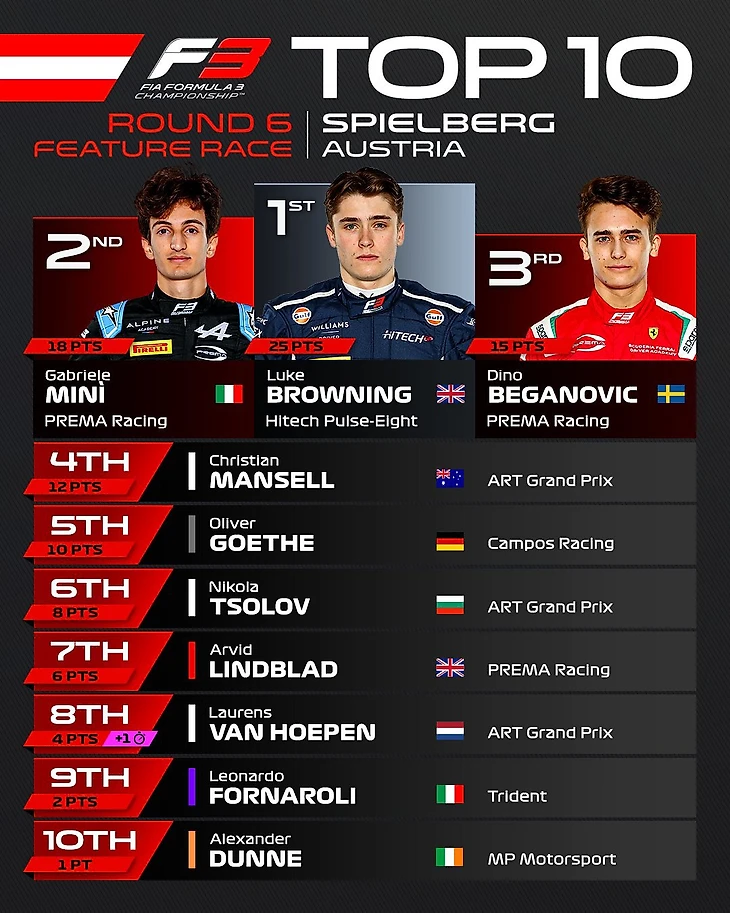 Формула-3. Австрия. Браунинг выиграл 2-ю гонку и возглавил чемпионат, Мини вырвал второе место у Бегановича на последнем круге, Бедрин сошел