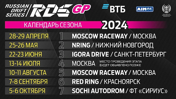 Освещение этапов RDS GP 2024 происходит также на официальных каналах в YouTube, RuTube и телеграм-канале без доступа к прямому эфиру. Там вы всегда сможете посмотреть обзор квалификации, самих гонок постфактум. Кроме того интересные моменты этапов можно посмотреть после их окончания в обзорах на телеканалах «Матч ТВ» и «Матч! Страна», которые являются партнерами российской гоночной дрифт-серии.