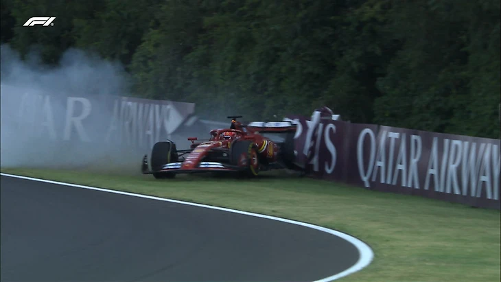 Гонщик «Феррари» Шарль Леклер столкнулся с барьерами во время второй сессии свободных заездов перед Гран-при Венгрии.