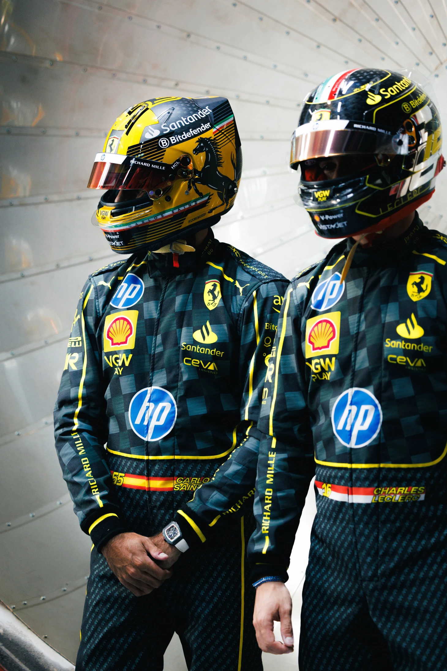 Шарль Леклер и Карлос Сайнс представили расцветки, посвященные углеволокну. Ранее Скудерия продемонстрировала аналогичные комбинезоны и специальную ливрею.